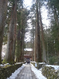 光前寺の杉並木。春から秋にかけては光苔が神秘の灯りをともします