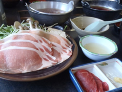 コラーゲンたっぷりの地産の豚を使った「豚しゃぶ」と名物の馬刺し