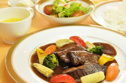 ランチのおすすめは、那須鶏&野菜のナンとライスカレー(1365円)とビーフシチューランチ(1680円)。野菜もたっぷりでこのランチを食べにくるお客様もいるほど