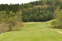 六角形と大きな一枚ガラスはこのクラブハウスのひとつのモチーフとなっている。 2階のレストランも南側を角にして、一面につき約3m×5mのガラスが4枚ずつはめこんである。 サッシは木製。テラスへはドアではなく引き戸で、網戸までついているのがおもしろい。テラスに出ると、足元が玉砂利になっており、手すりは重厚な栃木産大谷石で囲われていた。 西日が直接差しこまないので、窓を開け放てば風で十分涼しく感じられ、耳をすませば鳥のさえずりが聞こえてくる。 プレーの合間にもこうした自然と触れ合うことができ、気持ちよさと贅沢な安らぎのひとときを十分に堪能できる仕かけになっている。 コースは中嶋常幸が監修している。 クラブハウスを中心として、北東の6ホールをまわったあと、7番から西へと移動し、10番からは南西に展開する9ホールをたどっていく。 バックティからでも6155ヤードと距離はあまり長くはないが、変化に富み、飽きるこ とがない。 ラウンドしてわかったのは、1打目と2打目の落としどころをどこに設定するかを問 うホールが多いことだ。ドライバーで飛距離をかせいだからといって、次のショット が楽になるホールが連続しないところが、このコースの特徴なのだ。 フェアウェイのアップダウン、直角に近いほど屈曲しているドッグレッグ、グリーンの目の前にたちふさがる池。想像力をかきたてる落としどころの見えないショット。 コースに仕かけられた罠が、判断のミスを誘う。 しかし、それでいて極端に難易度の高さを感じないのは、コースにしっかりと幅を設けてあり、グリーンが広く大きめにとってあるせいだろう。 セカンドショットでグリーンを狙えばパターがむずかしくなる。2段、3段グリーンで複雑な起伏なので、ラインを読む楽しさがある。 同じホールでも、もし3打目でピンに寄せられれば、ワンパットで入れられる可能性が高い。 ![]()