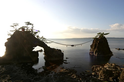 ![]() 能登金剛の機具岩。夕陽の名所としても知られるスポットです