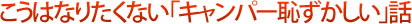 | 夏から秋のキャンプ最適シーズン。初心者キャンパーもいろいろなキャンプ場に出かけることでしょう。今回は、初心者であっても初級者であってもこうならないために、「恥ずかしい話」を集めました。 |