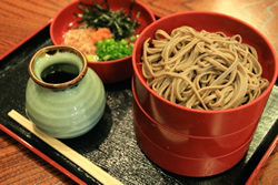 ![]() 年間を通じて参拝客が途絶えない出雲大社 ![]() 出雲大社名物「出雲そば」は殻ごと挽くのでやや黒いおそば