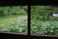 ![]() 「離れの山荘」は蓮池を望むように建築されている