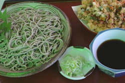 心にパワーを授かったあとは、身体にパワーを注入しましょう。 おもしろいのは「うちだや」の“むかしそば”です。 古人たちは鹿島神宮に寄ったあとで、そばを楽しんだという事実にちなみ、そのころの味を再現しています。 まずは昔のままの“皿盛り”。お皿の上に、どんとおそばが盛られています。この時代、鹿島地方にはまだ、“せいろ”が普及していなかったようです。 電気やガスがなかった時代を想定して、天ぷらも低い温度の油で揚げられます。 低温天ぷらには独特の食感がありました。 かき揚げの中身はナス、シイタケ、カボチャなどの季節の野菜、茨城名物のレンコン(茨城は全国生産量1位だそうです)。干し海老もきちんと入っています。 昔の人たちは歩いて参拝に来て、再び歩いて遠くの家まで帰っていきました。さぞや、お腹も空いたでしょう。 もちろん、それも想定内。ボリュームもたっぷりです。 |
