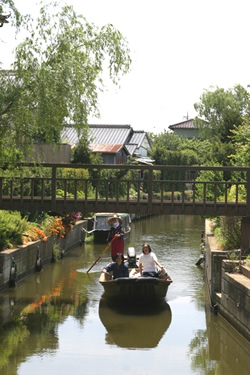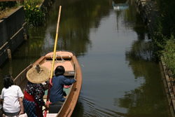 ![]() 江戸時代に整備された細い水路を行く小さな旅 ![]() 娘船頭の案内で水路をめぐる。アヤメの季節でなくても年間通じて楽しめる