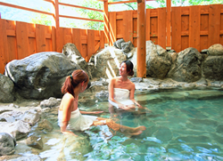 近づいてみて初めてわかるのだが、ワイヤーで吊られた橋の足元には板が渡してあるだけで、下はすけすけ。人がすれ違うのもやっとというほどの幅しかなく、一度に渡れる人数は10名というのもうなづける。 「夢の」という名前には、幻想的なという意味のほかに、夢に出るほど怖いという意味があると言っていた宿の御主人の言葉がよくわかった。 宿泊施設は全部で13軒。 宿で1000円の「湯楽戯手形(ゆらぎてがた)」を購入すると、町営露天風呂のほか、3カ所の宿のお風呂の湯めぐりを楽しむことができる。 無色透明だが、硫黄の香りがして温泉の効能が感じられる肌に優しい湯だ。 ファミリーで子どもを連れていくだけじゃもったいない。 人にやさしくなれるような、心の安らぎを与えてくれる旅になった。 今年の秋、10月7日~10日には、この一帯で「SLフェスタ」が開催される。 市内の小中学校では7日(金)を休みにし、4連休になる。蒸気機関車をテーマに、無料での親子のSL乗車体験や金谷駅での転車台手回し体験などを予定している。大代橋から新大代橋にかけて、2万株のコスモスが植えられるなど、いつもとは違ったにぎわいをみせるだろう。 |