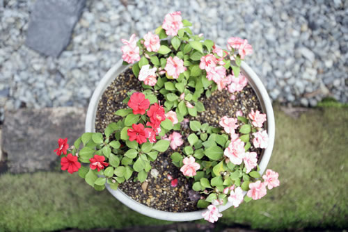 植木鉢のお花を真上から撮影。