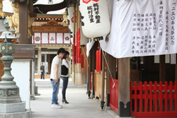 館長にいろいろなお話をうかがったのですが、距離が近いこともあって、九州と大陸(いまの中国)の関係が非常に深いことを知りました。 遣隋使船や遣唐使船を含め、さまざまなかたちで大陸の文化が九州に上陸しているのです。 博物館にもそれに関する展示が多数ありました。 博多の街を散策していても、その痕跡が見つけられます。 「うどん」は市内の博多駅前1丁目にある承天寺を開いた聖一国師が中国から持ち帰ったと伝えられており、承天寺境内には「饂飩蕎麦(うどんそば)発祥之地」という石碑が建っています。 さらに、聖一国師は親切にしてくれた茶屋の主人に、中国で覚えた饅頭の作り方も伝授し、これが日本での饅頭のはじまりだったとか。 さまざまな“日本ことはじめ”が、博多にはあるのです。 ☆ 博多市内のなかで、昔の面影を残す上川端町の一角に、「櫛田神社」があります。 博多の総鎮守として「お櫛田さん」の愛称で博多の人々から親しまれている神社なのですが、ここがまさに博多最大のスピリチュアルスポットです。 創建は平安時代とも伝えられ、博多が町として整備される前からあった神社だけに、それほど大きな神社ではないのですが、市民の信仰も厚く、訪ねたときは結婚式が行われていました。 |