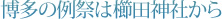 ![]() 博多の人々の櫛田神社信仰は厚い。気軽に訪れて手を合わせていく ![]() 櫛田神社の境内に年間を通じて設置されている「飾り山笠」
