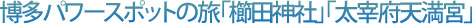 | 「旅行したい街」として常に上位にランクインする博多は、“モツ鍋”“ラーメン”などが人気ですが、食べるだけが魅力ではありません。「学業の神様」として全国に知られる太宰府天満宮をはじめとするパワースポットも多いのです。 |