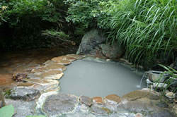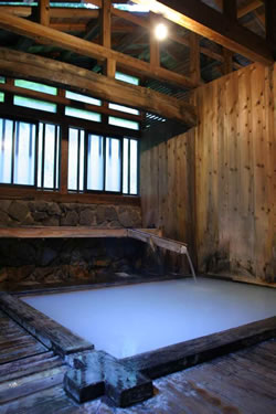 鶴の湯温泉 所在地:秋田県仙北市田沢湖先達沢国有林50 TEL:0187-46‐2139 入浴料:500円 日帰り入浴:10:00~15:00(月曜露天風呂不可) 泉質:含硫黄‐ナトリウム・カルシウム塩化物‐炭酸水素泉 ほか3種 「西の黒川、東の乳頭」と言われるように、熊本県阿蘇郡にある黒川温泉と、秋田県田沢湖町にある乳頭温泉は、昔ながらの風情を残す東西の秘湯の横綱に君臨している。 乳頭温泉郷には7つの宿があり、それぞれ泉質が異なることから、宿名が温泉名を示すようになっている。 もっとも古くから伝わるのが、黒湯温泉と鶴の湯温泉だ。 明治19年刊行の『日本鉱泉誌』(内務省衛生局編纂)によれば、名前が登場するのはそのふたつと蟹の湯鉱泉(現在の蟹場温泉/発見は天保13年・1842)だけだ。 黒湯温泉も鶴の湯温泉も発見された年月については「詳らかならず」と明らかになっていない。 とくに鶴の湯温泉については、「元和(1615~1624/徳川幕府の始まり)以前にかかると言う」とある。おおまかに見積もって、すくなくとも400年以上の歴史があるのだ。 鶴の湯という名前も古く、猟師がこの湯で傷を癒す鶴を見つけたという言い伝えが残っている。 いまでは10万人以上の観光客が訪れる人気温泉地に成長した鶴の湯だが、現在の地位を築いたのはそれほど古い話ではない。 同じ乳頭温泉郷で大釜温泉を経営していた佐藤和志さんが、13代続いた鶴の湯の経営を委ねられたのは1983年のことだ。 当時は電気も電話もなく、建物は老朽化していて、アクセスも悪かった。 そこにあったのは、手つかずの自然と乳白色の温泉だけだったが、泉質はすばらしかった。 そこで佐藤さんが最初にはじめたのは道路の拡幅だった。 中古のブルドーザーを購入し、県道からの道を確保すると、次に露天風呂の整備を行った。 発電機に変えて水車による水力発電をはじめたのもこの頃だ。 その後、歴史ある茅葺屋根の本陣とは別に、最新設備の別館を建てたものの、旅行者は一様に本陣へ泊まることを望んだ。 多少不便であっても、秘湯のイメージそのままの本陣に人気が集まるのは予想外のことだった。 ヒントをつかんだ佐藤さんは、ありのままの原風景を大切にし、自然や文化を生かした環境作りに取り組み始めた。 そして、それまであまりの雪深さに困難といわれていた冬季の営業に踏み切り、スキー客など新たな客層をつかんだ。 それ以後、雑誌等に頻繁に取り上げられるようになり、今日の成功へとつながっている。 田沢湖から県道をスキー場のある田沢湖高原へ向かうと、右手に秋田駒ケ岳と乳房の形をした乳頭山が姿をあらわす。 黒湯温泉や蟹場温泉といった乳頭温泉郷の宿はそのまま県道を直進するが、北西にひとつ山を隔てた林道を分け入った奥に鶴の湯温泉はある。 クルマで林道を進むこと約4km。 突然目の前にあらわれるのは、昔ながらの茅葺屋根の建物が寄り添うように集まった小さな集落だ。 鳥居のような門柱が、自然と人里を隔てる結界のようにも思える。 鶴の湯には1号館から3号館までの新館のほかに、部屋に小さな囲炉裏端のある本陣と、新しい棟の新本陣、東本陣がある。 いずれも外観は周囲の景観を損なわないような配慮をしつつ、施設内は暖房や電話、ウォシュレット付きのトイレなど、現代の生活に沿って快適に過ごせるような工夫が施されている。 また、電線を埋設することによって文明を気づかせない配慮がなされているのも、心理的に大きな効果がある。 15時までは日帰り入浴を受け入れているために、村内は多くの観光客でにぎわいをみせる。 しかし、その時間を過ぎてしまうと一転して静かな山村へと様変わりし、宿泊者だけの至福の時間が訪れるのだ。 宿泊者が真っ先に向かうのは大露天風呂だ。 雑誌やパンフレットで見たとおり、乳白色の広大な露天風呂は圧巻のひと言に尽きる。 湯の中から無数の泡が立ち上っており、足元の湯の底を探ると湯が湧き出しているのがわかる。 自然に循環する、まさに天然の湯船なのだ。 その周りには内湯が4カ所あり、どれも泉質がまったく異なっている。 白湯=美人の湯。別名冷えの湯 含硫黄-ナトリウム・カルシウム塩化物‐炭酸水素泉 滝の湯=打たせ湯 含硫黄-ナトリウム塩化物-炭酸水素泉 黒湯=ぬぐだまりの湯。子宝の湯 ナトリウム塩化物-炭酸水素泉 中の湯=眼っこの湯 含重層-食塩硫化水素泉 ![]() 4カ所ある内湯のひとつ、「白湯」。露天風呂と同じ泉質だが、ほかに泉質の異なる3種類の温泉が楽しめる