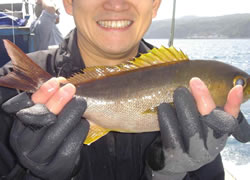 海に沈む夕日を眺められる 海沿いの巨大露天風呂 所在地:東京都大島町元町トンチ畑882 泉質:ナトリウム―塩化物温泉 源泉:54.4度 湧出量:毎分305リットル 入浴料:大人400円/子ども240円 営業時間:13:00~19:00 定休日:無休(天候により休業) TEL:04992-2-1446 *内湯はなく、男女混浴のため水着着用のこと 御神火温泉 ジャクジーや打たせ湯、サウナのほか 25m温泉プールもあり 所在地:東京都大島町元町字仲の原1-8 愛らんどセンター御神火温泉 泉質:ナトリウム・カルシウム―塩化物温泉 源泉:47.9度 湧出量:毎分312リットル 入浴料:大人1000円/子ども600円 営業時間:6:30~21:00(夜行便が到着する日)/9:00~21:00(夜行便が到着しない日) 定休日:第2木・金曜日(2、3、8月は変則) TEL:04992-2-0909 ![]() 30cmを超えるいい型のイサキが入れ食い状態に!