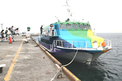運賃はジェット船が片道7320円、大型客船2等船室で4500円。熱海―大島間がジェット船で4600円。