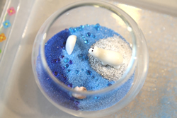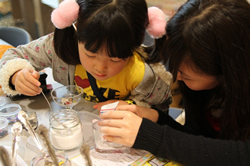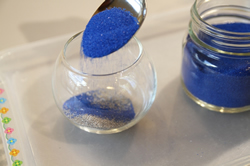![]() 選んだ容器の中に、これまた自分で決めたカラーサンドを入れます。仕上がりをイメージして!