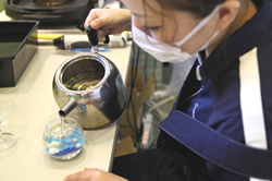 ![]() クリアキャンドルを注ぐ谷澤さん。丁寧な仕事が求められます