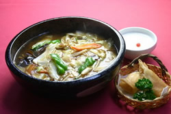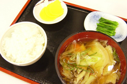 ![]() B級グルメで一躍脚光を浴びた八戸せんべいを使用した「せんべい汁」が定食になり人気です。たっぷりの野菜に鶏肉、せんべいが入った汁はとても温まります。 |