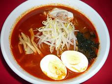 ![]() スープをひとくち飲めば、なんとも心地好い辛さが口内に広がって、それだけで十分にあつあつ。比内地鶏の出汁、チャーシュー、玉子のトッピングもグッドです。 |