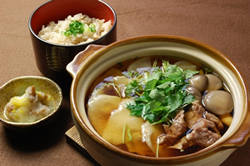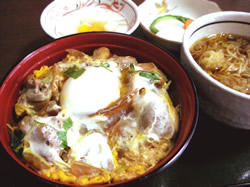 ![]() 環境のいい自然の中で放し飼いにされた川俣シャモを使用した丼です。鶏肉の歯ごたえがよく、噛めば噛むほどお肉のおいしさが染み出してくると評判です。 |