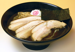 ![]() まさに「喜多方名物」、厚めにカットされたチャーシューが載っています。喜多方ラーメンの特徴であるあっさり醤油味も食べやすく、 あっという間に完食してしまいます。 |