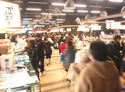 ![]() 構内の「ぽんしゅ館」のグルメ処「うおぬま食堂 雪ん洞」の「爆弾おにぎり」は18種の具材を用意