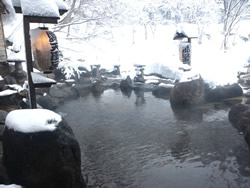 ![]() 上越には温泉も数多くあります。雪見温泉を楽しんで(写真は貝掛温泉)