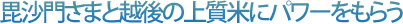そこは、越後湯沢駅です! 「なんで!」と驚かれるかもしれません。数年前に行った人には想像もつかないと思います。 しかし、今では広い構内が整備されて、一大モールになっているのです。 新潟の地酒やお米が揃う「ぽんしゅ館」、構内温泉には「酒風呂」まであります。さらに、2009年12月に昭和時代初期の雁木(がんぎ)造りの家屋の町並みを再現した「がんぎどおり」も登場。散策できるショッピングモールになっているんです。 グルメだって見逃せません。銘菓にはじまり、飲食店も個性的。 私が食べたのは「おにぎり」です。それも爆弾サイズ。魚沼産のコシヒカリにお好みの具が注文できます。これでもかっていうほどの大きさで、お米のおいしさを堪能しました。お米がおいしい土地って、どれだけ恵まれているんでしょう。 ☆ 五穀豊穣や家内安全、身体健康にご利益がある毘沙門さまと、それによって実った魚沼のコシヒカリ。 心と舌にご利益がある上越へのお出かけは、印象に残るに違いありません。 |