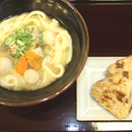 ![]() 寒い時期の名物が「ほたてご飯」です。単品でもOKですが、うどんやそばとのセットが人気です。10時スタートで数も限定なので、お早めに注文を。やはり、北海道の冬は帆立貝ですね! |