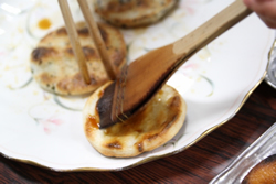 ![]() 焼きあがったら醤油を塗って体験も終わり