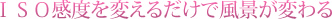 しかし、コンパクトカメラの場合、望遠と接写の操作はワンタッチで簡単にできても、そのほかは「MENU」から入って、画面を複数回押して各種設定を変えないといけません。 これが案外面倒なのです。 ただし、コンパクトカメラの場合、「シーン」などを選んだら、その後はカメラ任せにしてしまう人が多いでしょうし、カメラもそれに応じてくれるような仕組みになっています。各種設定を気にしなくても、カメラが自動的にうまく撮影してくれるのです。 ですからコンパクトカメラで設定にこだわり過ぎるのも疑問ですが、ごく簡単な操作で仕上がりの違いが楽しめる方法があります。 筆者の場合は「ISO感度」の変化で写真を楽しんでいます。 コンパクトカメラは「自動的に上手に撮影しよう」としてくれますから、その特性に存分に甘えるわけです。 たとえば、ISO感度を100にしたとしましょう。 この場合は暗いところではあまり光をとらえてくれません。それを自動的に補正しようとして、シャッター速度は遅くなります。 一方、ISO感度を1600などにした場合は、光をずいぶんとらえ、その状況のなかでうまく撮影しようとカメラが補正してくれてシャッター速度が速くなります。 こんなワンタッチの操作でも写真は変わるものです。 |