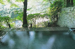 ![]() 早川を望む露天風呂「翠雲の湯」。22時~翌4時まで貸し切り可能だ