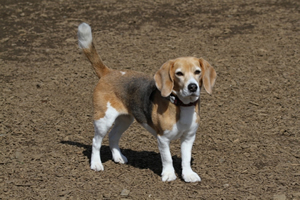 一方、写真3は低くかがんでからシャッターを切りました。 撮影者と目線の高さが同じになったので、ワンちゃんもうれしかったのでしょう。 すぐに、こちらに向かって歩いてきてくれました。 撮影者に親しみさえ感じてくれたようです。写真1、2より明るい表情が出ていませんか? ![]() 写真3