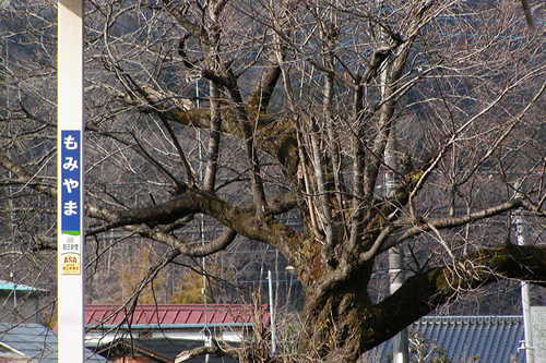 写真A、Bは栃木県の東武日光線・籾山駅のホームです。ある年の2月、駅を巡っているときにホーム脇の桜の存在に気が付きました(写真A)。そこで、桜が咲く時期に訪れてみようと思い、一昨年の春に訪れ撮影したのが写真Bです。