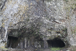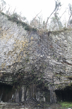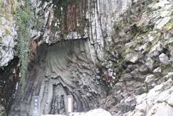 ![]() こちらは縦方向斜めに節理がある「南朱雀洞」。それぞれに形状が異なります