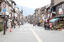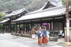 ![]() 木造三階建ての建造物が並ぶ城崎温泉。平日の午後なのにおみやげ店に人があふれていました