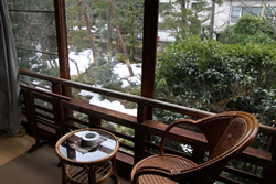![]() 志賀直哉が宿泊した中庭が望める部屋(写真)がそのまま残されて利用されている三木屋旅館