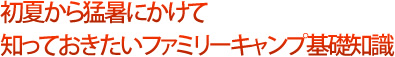 | さあ! キャンプに最適なシーズンが到来しました。河原で遊ぶ、海で遊び、森で遊ぶ。ファミリーで大自然を満喫できる季節です。これからの季節を大いに楽しむため、そして危険を回避するための知識を身につけておきましょう。 |