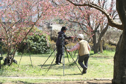 ![]() 公園で見かけた夫婦。三脚を用意してカメラをセット。ふたりでお互いの写真を評価しながら撮影していました
