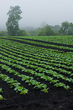 写真Eはキャベツ畑を斜め方向から撮影した写真です。