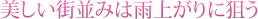 屋根や道がしっとりと濡れた街並みには、なんともいえない風情があるからです。