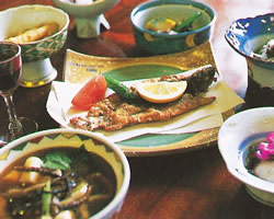 前置きが長くなってしまったが、阿部薩摩は、これから登場する温泉宿の始祖といわれている人物なのだ。 板谷街道の福島県側から米沢城下へは、庭坂、李平(すももだいら)、板谷、大沢といった宿場を通る。そのうち李平宿は阿部薩摩によって慶長18年(1613)に拓かれたとある。 まさに阿部薩摩こそが、日本最大の難所のひとつである、板谷峠を切り拓いた本人だったのだ。 阿部薩摩は李平宿のほかに、福島市の笹谷地区を開拓したと伝えられている。 福島市から土湯温泉までは、南西に約20kmの距離があり、阿部薩摩の子孫がその後、どのような理由でこの地に居を構えるようになったのかは定かではない。 ただ、上杉家は、上杉綱憲家督相続の寛文4年(1664)、30万石の所領を15万石に半減されている。 土湯温泉のある信夫郡と伊達郡は、米沢藩の所領だったのだが、幕府に召し上げられて一時的に天領となる。 その後、信夫郡は福島藩領や天領、他藩飛び地など、村単位で統治されることになる。 こうした経緯が、土湯温泉に宿場を開くに至った一因なのかもしれない。 時代が移り、江戸が明治に変わる激変期になると、阿部家の温泉宿は、戊辰戦争(1868-1869)で会津藩に家屋を焼き払われるという不幸に見舞われる。 土湯を追われた阿部家は、現在の川上温泉がある場所よりもさらに100mほど上流に宿を構えた。しかし、追い打ちをかけるように、明治10年(1877)に山津波が襲い、宿は崩壊する。 現在の場所で再スタートを切ったのは、昭和16年(1941)のこと。 温泉までの道を切り拓いたのは、現在の当主の祖父に当たる。 土湯温泉街から荒川をさらに上流へ上がったところに「川上温泉」はある。 「日本秘湯を守る会」の提灯が、旅行者を出迎えてくれる。 自家源泉は6本。 自然湧出で、そのうち3本の源泉を混合して引湯しているのだが、高温のため、一部浴槽では湧水で温度調整をしていることを堂々とうたっている。 ![]() ![]() 料理は素朴な山のごはん。ご主人は冬虫夏草に詳しく、冬虫夏草酒や汁物が振る舞われる