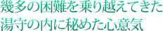 | 福島市から山形県米沢市に至る板谷峠は、群馬・長野県境の碓氷峠と並び、日本で最も急峻な鉄道ルートのひとつだ。江戸時代にこの板谷街道を整備した武士のDNAは、いまも奥土湯の秘湯に受け継がれている。 |