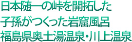 泉質は単純泉で、無色透明で、ほんのわずかに温泉臭が漂う程度。 これならクルマに積もった雪を温泉で融かしてたとしても問題ない。 内湯である「立湯・万人風呂」は、タテ約10m、横4m、一番深いところで1.2mというプールのような温泉だ。 入ってみると、立湯という命名がよくわかる。 川上温泉にはもうひとつ、名物の「半天岩窟風呂」がある。 職人が1年半かけて岩を手掘りして作った、半分露天の洞窟風呂。 奥行6m、深さ0.85mもあり、洞窟の奥では岩の隙間から源泉が毎分120リットルも湧き出ている。 湯床は青森ヒバなので、ごつごつとした岩が尻に当たることはない。 ともに日帰り入浴が可能だが、残念なのは、これらが男女別に仕切られてはいないこと。 そのため男女が日替わりになる。 宿泊をしなければ、両方の浴槽に入ることができないというのも、興をそそられる要因になっているのかもしれない。 それにしても、「半天岩窟風呂」は、その規模の大きさに驚かされる。 木造りの露天風呂としては県内一の大きさというのもうなづける。 主人は朴訥として、客人へのサービスや配慮を積極的に表現しないタイプなのだが、どんな困難があろうとも、それを克服していこうという気概が、このスケールの大きな湯船からひしひしと伝わってくる。 それはまさに、日本随一の難所である板谷峠と宿場を開発した、阿部薩摩のDNAなのかもしれない。 |