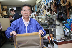 ![]() 森田鞄製作所では厳しい目で代表の栗田さんが製品をチェックする