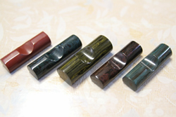 仕事にかかっている数名の職人たちは活気に満ち溢れていた。 その後は都電を使って、まるで「ぶらり途中下車の旅」。 都電に乗ったのは何年ぶりだろう。 「エボナイト!?」。「それなに?」 こんな程度の知識で、荒川一中前駅で降りて「日興エボナイト製造所」に行った。 エボナイトとはゴムと硫黄を混合して加熱することによって作る硬質ゴム。天然ゴムを利用してエボナイトを作っているのは日本で唯一らしい。 ![]() エボナイト研磨体験で作った万年筆置き(500円~)。持ち帰れるのがうれしい