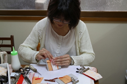 クルマでおでかけの場合も、三ノ輪や南千住周辺にクルマを駐車して、チンチンとベルを鳴らしてから発車する都電を使ってめぐるのがいいだろう。 基本的に見学・体験を希望する場合はそれぞれの会社に事前に連絡する必要がある。ただし、先方は会社であるから定休日は土・日曜・祝日である場合がほとんどだ。 また、体験料金も会社によって異なるし、無料の場合もある。 ![]() 森田鞄製作所で革製ストラップの文字入れ体験ができる(500円)