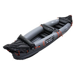 ドッペルギャンガーInflatable KAYAK K-10 3万円未満で購入できる5気室構造の2人乗りカヤック。クルマからでも電源が取り出せるポンプと2名分のパドル(組立式)も付属している。 重心の低い5気室にしたのは安定性を高めるため。直進性にも優れているので扱いやすい。ブラックとグレーのツートンカラーも好感が持てる。空気を抜けば、付属のキャリングバッグにポンプやパドルと一緒に入れられるために持ち運びも楽だ。 |