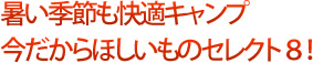 | 暑い時期に外で遊ぶ。汗もかくけど、それもまた爽快! でも、夏に適したアウトドア用品があればもっと快適。というわけで、この夏のキャンプにほしいものをセレクトしよう。 お休みの日はキャンプ場に出かければ「節電」にもコンクリートジャングルから脱出して「猛暑対策」にもなりますからね(笑)。 |