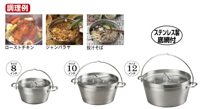 アメリカ・ユタ州のアウトドアクッキング用品メーカー。ポットとスキレットが一体に。 ![]() ユニフレーム ダッチオーブン10インチハーフ(参考価格9,900円)