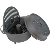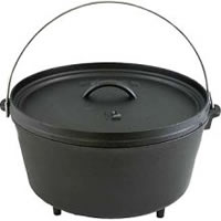欧米の家庭で使っていた鉄鍋が由来だが、一般的にはアメリカの西部開拓時代に開拓者やカウボーイたちに愛された鉄製の鍋をダッチオーブンと呼ぶ。 ダッチオーブンと名付けられたのは、オランダ人が売り歩いたという説や、ダッチという名前の人が売ったなどの諸説があるが、真相は定かではないようだ。 ☆ さて、この鉄製の鍋が主にアウトドアで過ごす人たちに愛されたのには大きな理由がある。 家庭用の鉄製鍋の底部に脚をつけ、薪(まき)の上に置けるように工夫しただけでなく、蓋にもフレンジ(縁)をつけ、蓋に薪や炭などが置けるように改良した。 それによって、アウトドアであっても鍋の下と上から“熱”を加えることができ、結果的に「煮る」「蒸す」「焼く」「炊く」「揚げる」と調理法が広がったのである。 食欲旺盛な開拓者やカウボーイにとって多彩な料理ができる鍋は、どれほど味方になったことだろう。ローストチキンなどのオーブン料理、ピザ、パンまで屋外で焼けるようになったのだ。 |